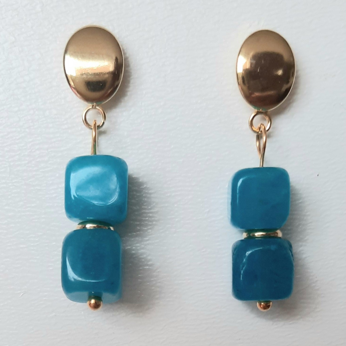 Oorbel Milaan is gemaakt van aquamarijn steen met een goudkleurige ovale steker. Aquamarijn heeft een kalmerende werking en vermindert stress.